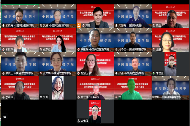 最后,双方党支部教师进行了云端合影留念。此次活动是纲要教研室党支部开展联学共建活动的重要环节,对于深入学习宣传贯彻党的二十大精神,实现支部建设“优势互补、互相促进、共同提高”,具有重要意义,也为活动双方进一步持续交流合作打下了良好基础。