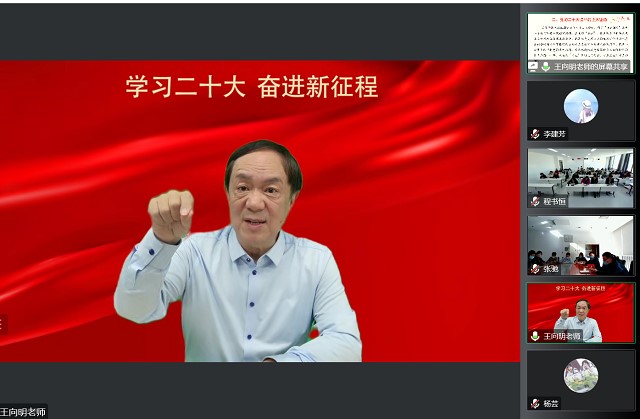 2022年10月31日下午,betway西汉姆联官网马克思主义中国化教研室党支部、2022级硕士研究生党支部与北京市西城区区委组织部第五党支部、新浪微博党委开展“党的二十大精神”共建联学活动,邀请中央电视台“二十大观察”直播嘉宾、中国人民大学习近平新时代中国特色社会主义思想研究院副院长王向明教授作报告。betway西汉姆联官网党委书记刘存福、学科群助理张虹老师、辅导员汪夕人老师以及四个党支部的全体党员参加了此次活动。活动由马克思主义中国化教研室党支部书记张廷广主持。