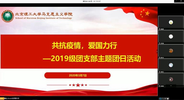 然后,团支部每个人都汇报了自己的学习和生活情况。同学们严格遵守规定,疫情期间几乎都宅在家中,看书学习上网课,抓住积累自己的好机会。