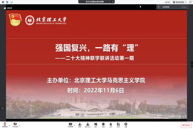 本次活动作为“强国复兴,一路有‘理’”——二十大精神联学联讲系列活动第一期,拉开了高校师生深入学习宣传贯彻党的二十大精神的序幕,加强了各院校间的合作交流。未来,北理工马院将进一步加强与各高校间的合作,共同开展宣讲活动,确保党的二十大精神入心入脑入行。