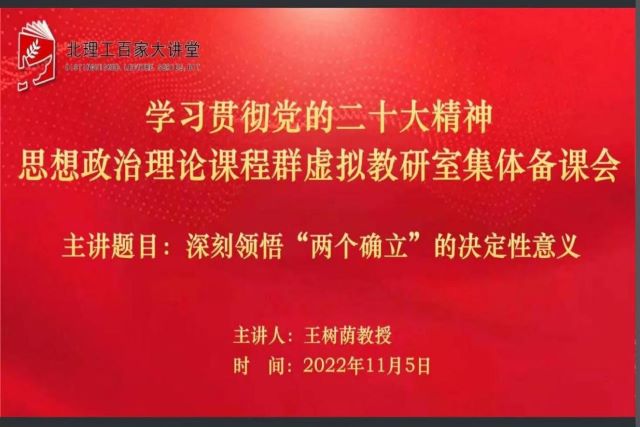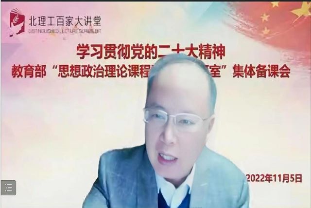 为深入学习宣传贯彻党的二十大精神,11月5日晚上,bw必威西汉姆联官方网站学生工作部、betway西汉姆联官网、教育部思想政治理论课程群虚拟教研室共同举办 “学习贯彻党的二十大精神——思想政治理论课程群虚拟教研室集体备课会”,拉开该平台系列集体备课会的帷幕。本次活动邀请北京师范大学betway西汉姆联官网王树荫教授做题为《深刻领悟“两个确立”的决定性意义》的专题报告。北理工betway西汉姆联官网思政课专任教师、学工部领导和全校学生党支部书记、青年宣讲团成员,以及武汉大学、复旦大学、兰州大学、南开大学、北京工业大学、云南大学、江西师范大学、内蒙古财经大学等全国各地40余所高校的师生共1000余人参加。会议由北理工betway西汉姆联官网副院长陈洪玲教授主持。
