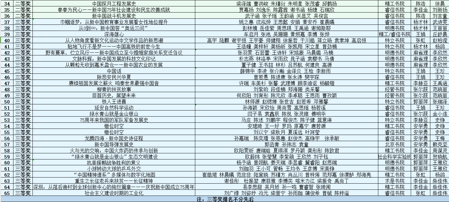 比赛获奖名单