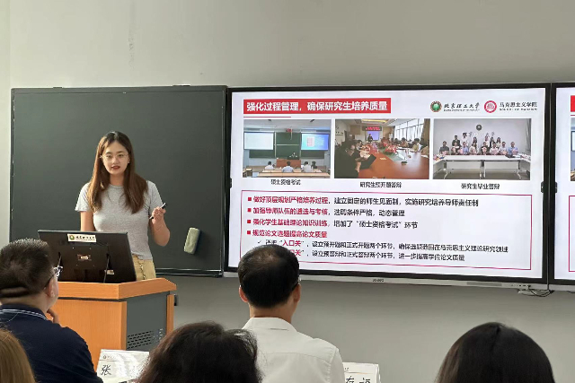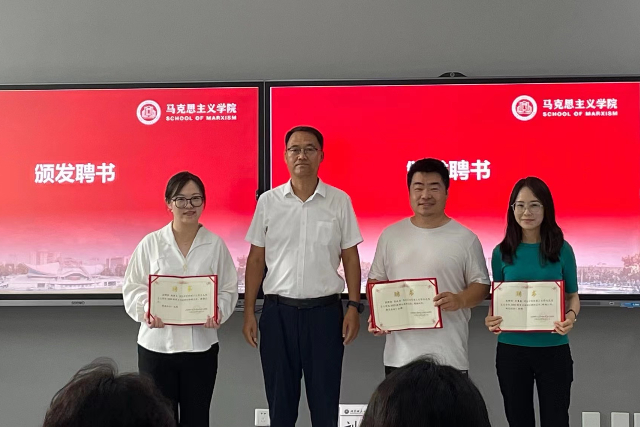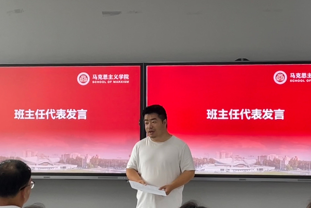 汪夕人详细介绍了学院概况、研究生培养环节、评奖评优等内容。随后,全体2023级新生依次上台,从学术经历、双创竞赛、社会实践经历等方面作自我介绍,进行热情友好的交流。王禹涵、李青瑜分别代表新老生发言。刘存福为班主任李佳金、赵紫玉、王慧敏颁发聘书,李佳金作班主任代表发言,从强健自身体魄、做好学业规划、提升学术能力等三个方面对新生们提出希冀。