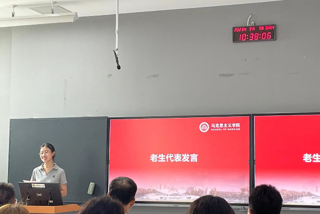 党委书记刘存福代表学院党委向全体新生表示了热烈欢迎,并提出了三点希望,一是要坚定马克思主义信仰,要在马信马、在马习马、在马言马,认真践行马克思主义,不做“本本主义”者;二是要提升专业素质,真学、真信、真懂、真用马克思主义理论,潜心问道、勤学笃行,在规范化、系统化的学术训练、学术培养中,逐步成长为合格的马克思主义理论专业人才;三是要传播好党的创新理论,同学们不仅要做马克思主义理论的学习者、研究者,还必须做马克思主义的传播者、捍卫者,要发挥理论优势,讲好马克思主义理论中国化、时代化的故事。