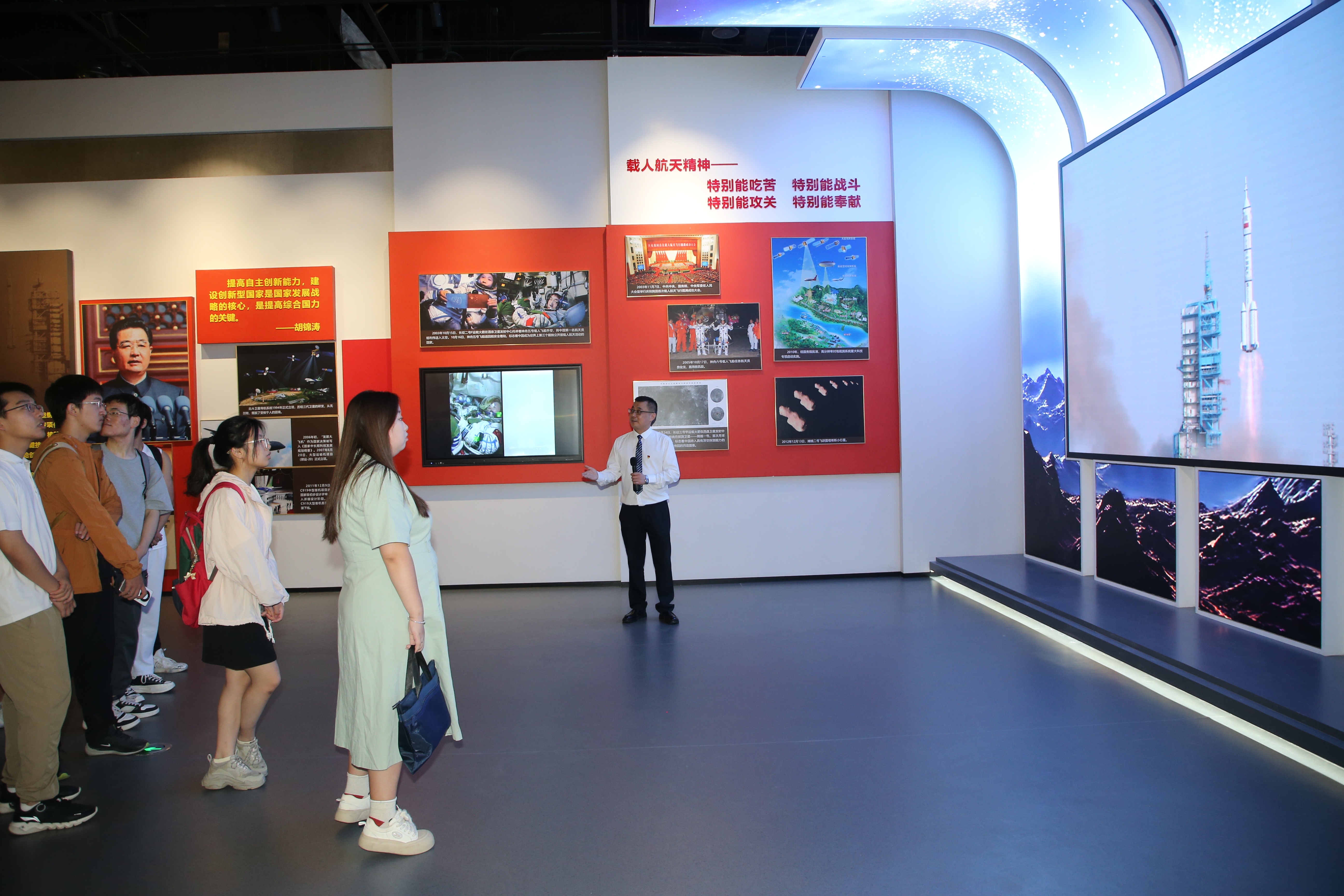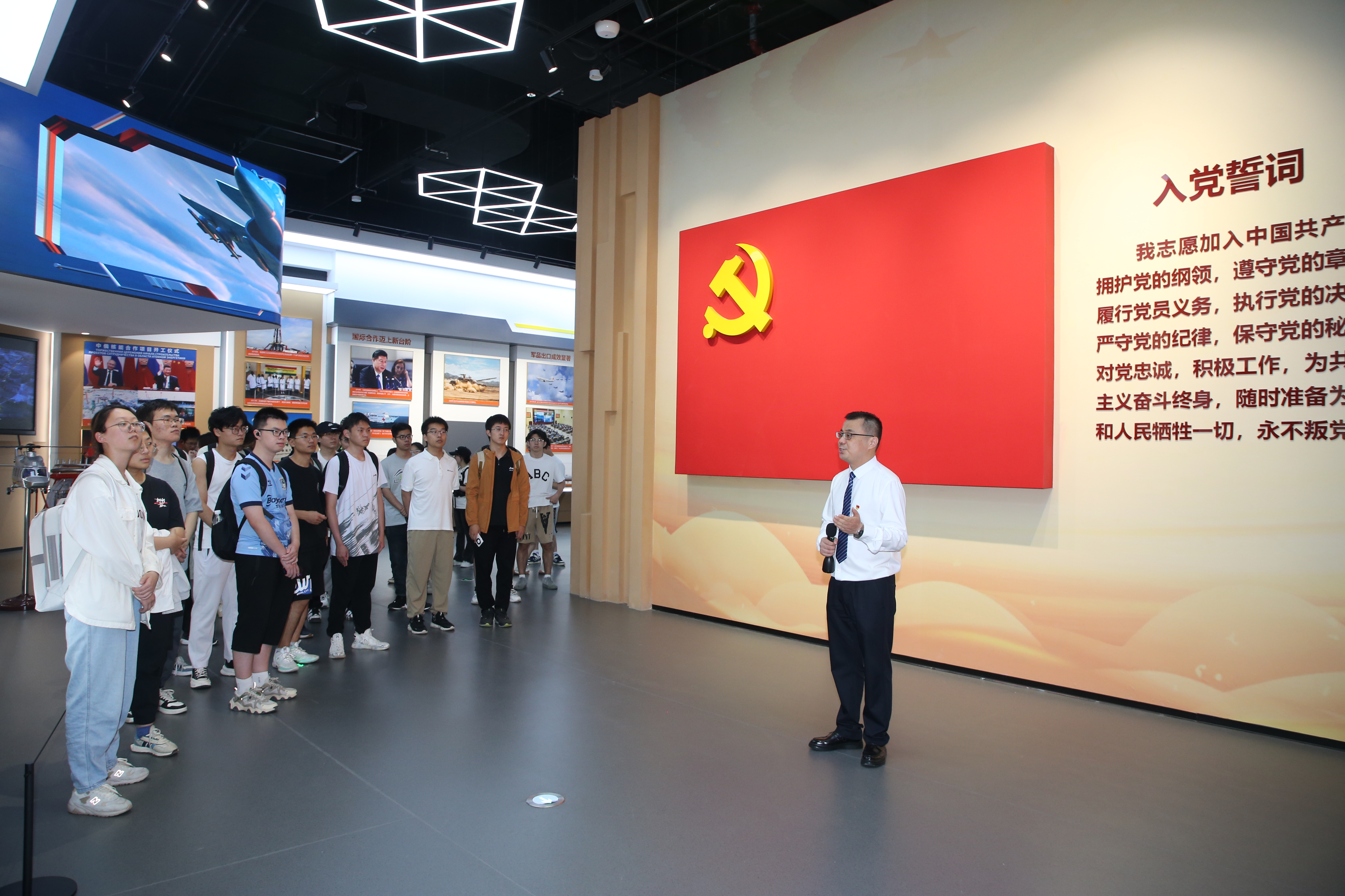 现场教学过程中,申晓勇根据“党领导的人民军工展”四个展示部分,结合新民主主义革命时期党领导的武装斗争和新中国成立后的国防军队建设,深入浅出地介绍了人民军工的发展历史、技术创新和服务国防建设的情况,特别是进入新时代以来人民军工在核心能力建设方面取得的辉煌成就。伴随申晓勇的讲解,同学们重温了人民军工在党领导下走过的光辉历程,深刻感受到了国防科技工业作为国家战略产业,在支撑国防军队建设、推动科学技术进步、服务经济社会发展中作出的突出贡献,接受了一场军工历史、军工文化、军工成果的精神洗礼,对党领导的人民军工事业有了更加全面深入的认识。
