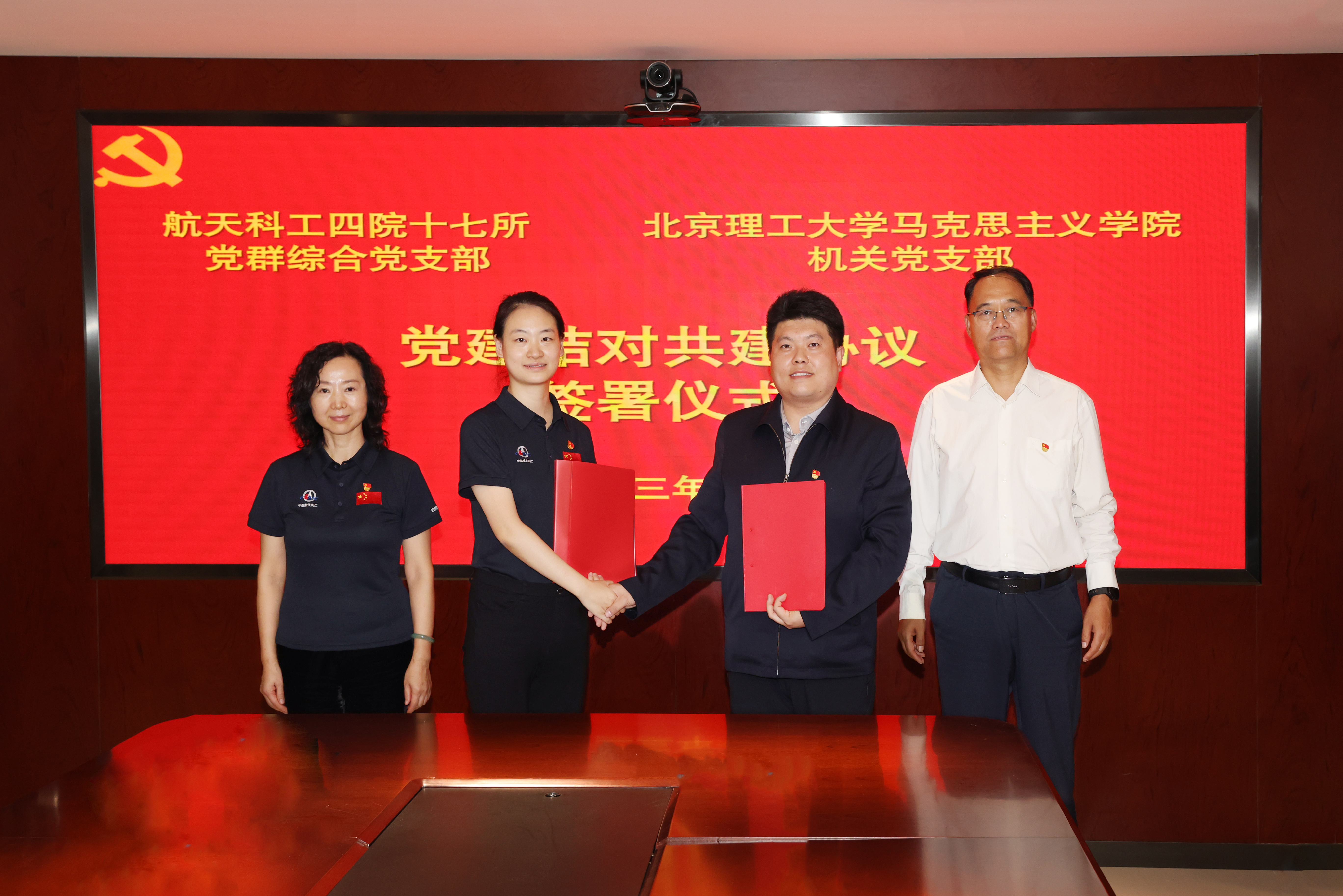 为深入学习贯彻习近平新时代中国特色社会主义思想和党的二十大精神,推进“明理共进”品牌,推进党建与业务真融深融,机关党支部与航天科工四院十七所党群综合党支部以“组织共建、发展共谋、活动共办、成果共享”为原则,共同开展“校企党建聚合力 产教融合促发展”主题党日,建立党建结对共建关系。