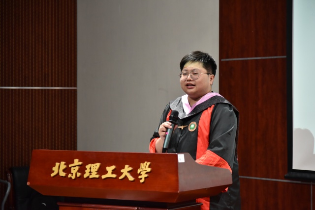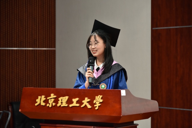 在毕业生代表发言环节,博士毕业生王子旭和硕士毕业生李青瑜分别发言。王子旭回忆了自己在马克思主义理论的深刻思维方式和强大解释力的吸引下,探寻真理、坚持真理的历程。特别感谢求学生涯中的良师益友,表示将扬帆起航,做新时代坚定的青年马克思主义者。李青瑜在发言中分享了在北理工马院两年的成长感悟,表示将继承和发扬北理工“延安根、军工魂”的红色基因,努力成长为“胸怀壮志、明德精工、创新包容、时代担当”的领军人,以远大理想和高远追求确定人生航向,将个人理想融入国家发展事业中。